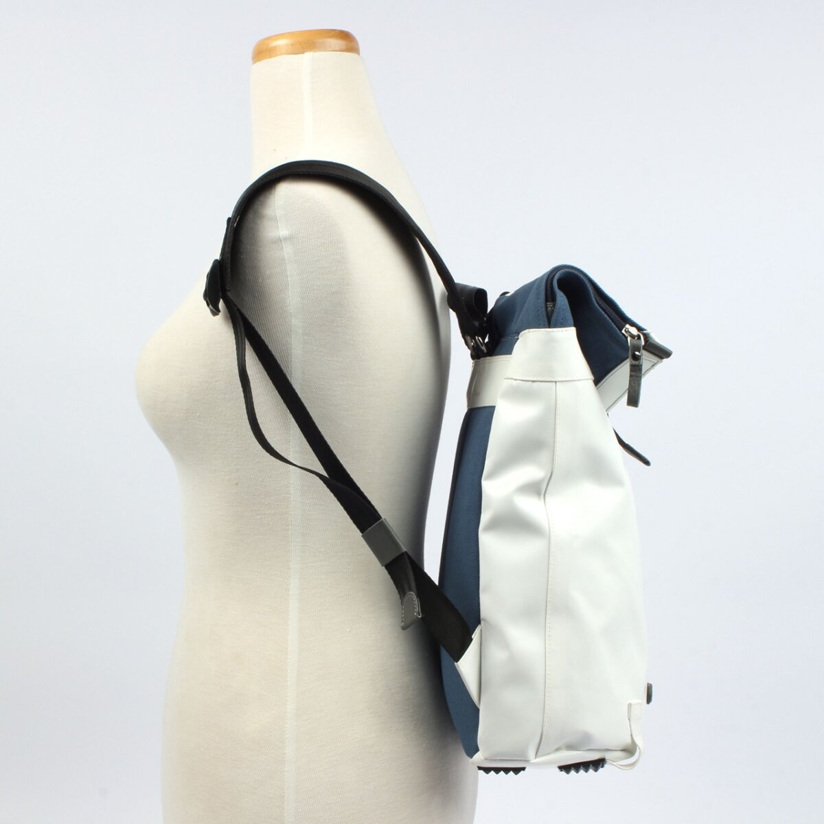 Discover the sustainable Dwars 7.4 laptop backpack made from recycled polyester RPET and boat cover tarpaulin.