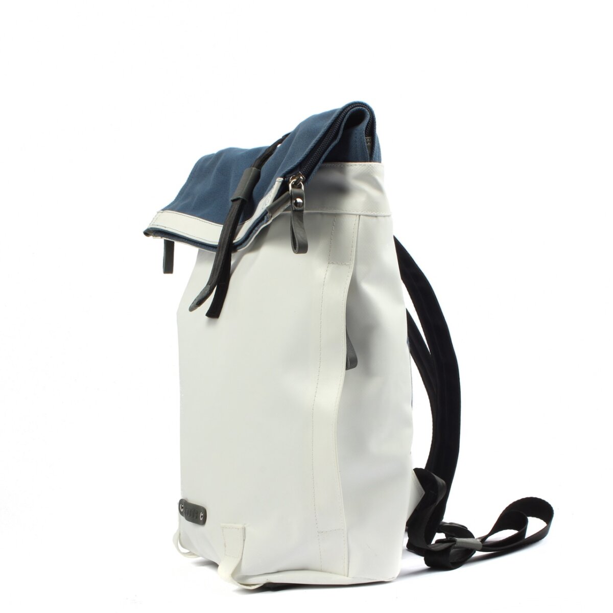 The Dwars 7.4 laptop backpack made from recycled polyester RPET and boat cover tarpaulin offers style, quality and sustainability. With 11.3L capacity, 14″ laptop compartment and practical design ideal for university, shopping or the office.