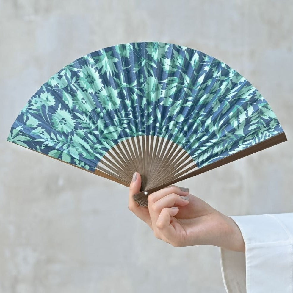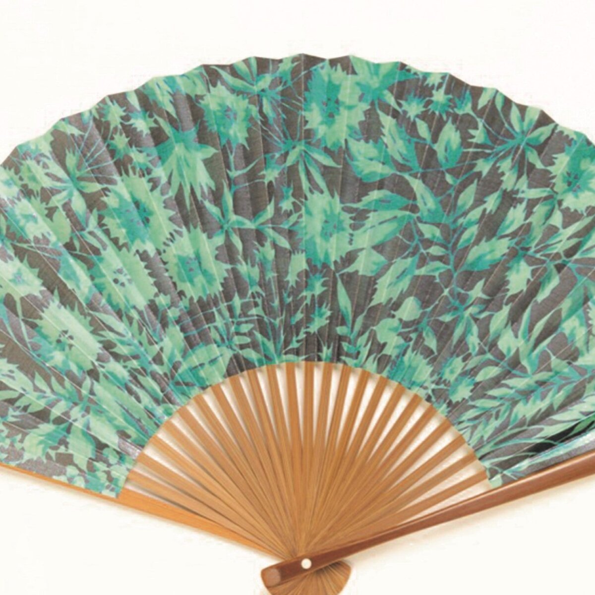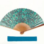 Folding fan – Fan Fun Kyoto – Botanical This handmade folding fan comes from Kyoto. A folding fan passes through the hands of master craftsmen 87 times. The result is a beautiful, high-quality fan with many ribs that feels good in the hand and produces a gentle yet powerful breeze. The frame of the fan is made of thinly sliced Japanese bamboo. The folding fan consists of three different layers of Japanese paper. The fan can be stored in a matching textile bag when not in use.