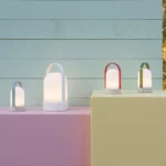 The Lys lantern from Remember is a handmade masterpiece made of hand-blown borosilicate glass in a color-blocking design.