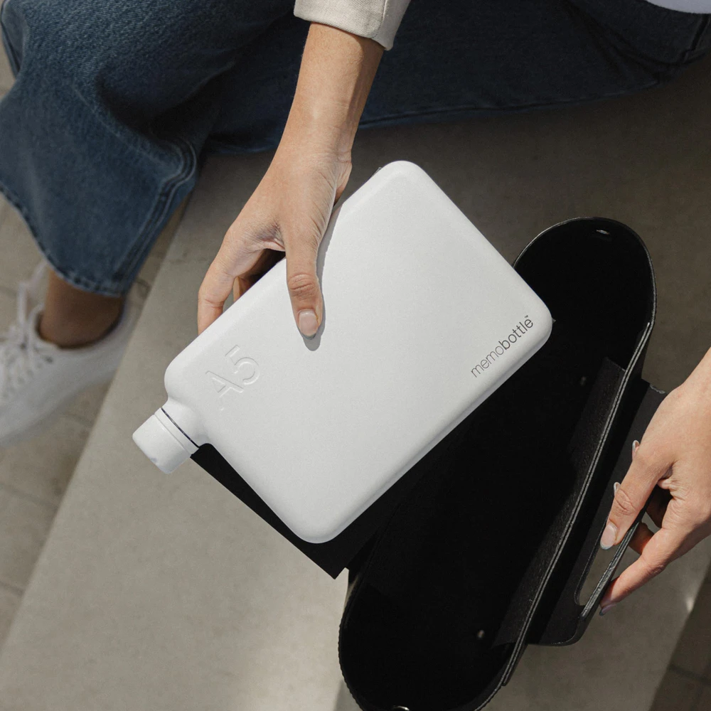 Its flat, paper-inspired design fits perfectly next to laptops, books and other essentials, optimizing space in your bag. Eco-friendly and purpose-driven Switch to the Memobottle A5 and eliminate the need for disposable bottles.
