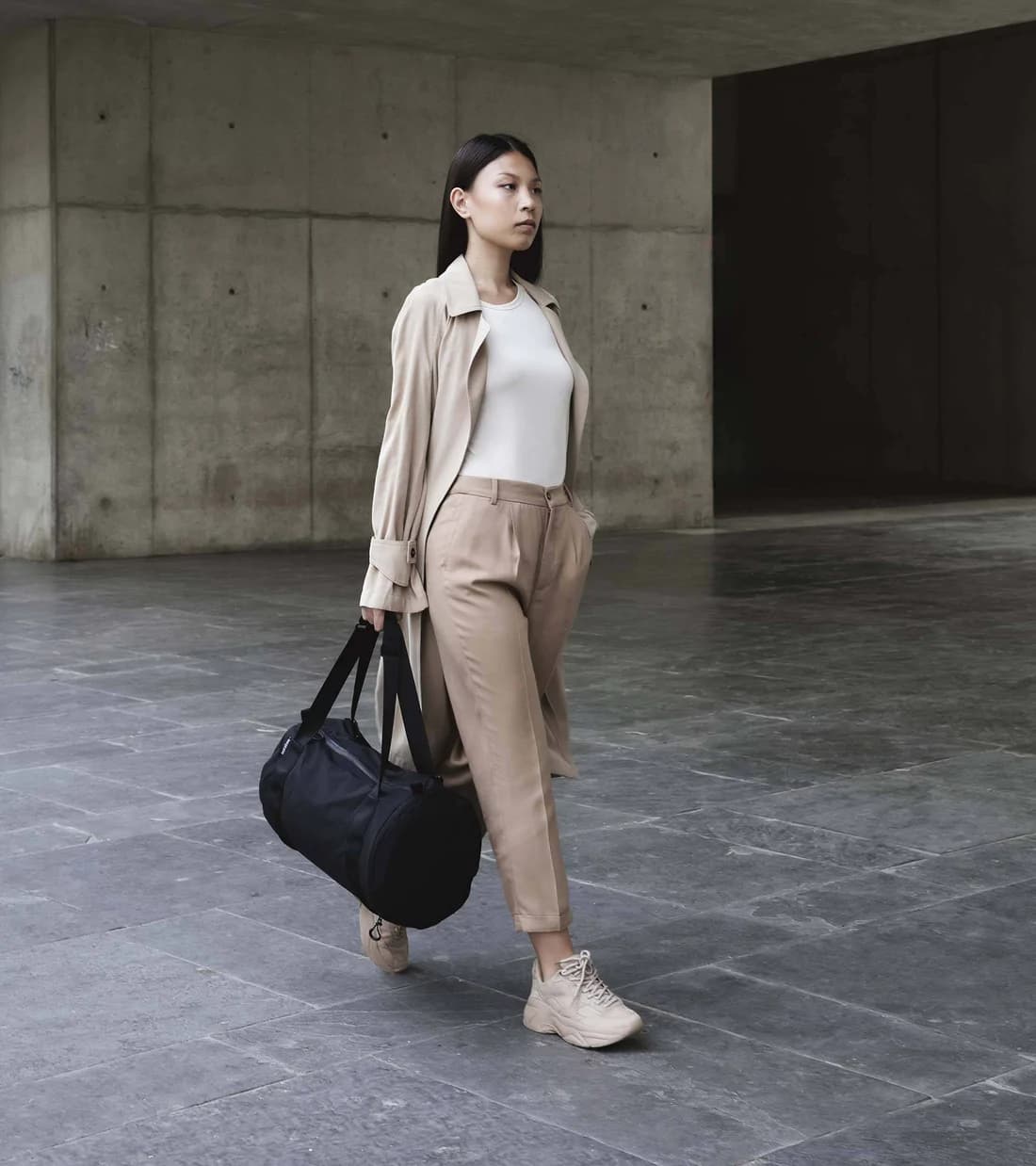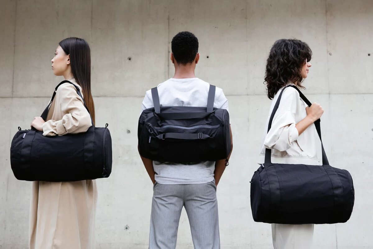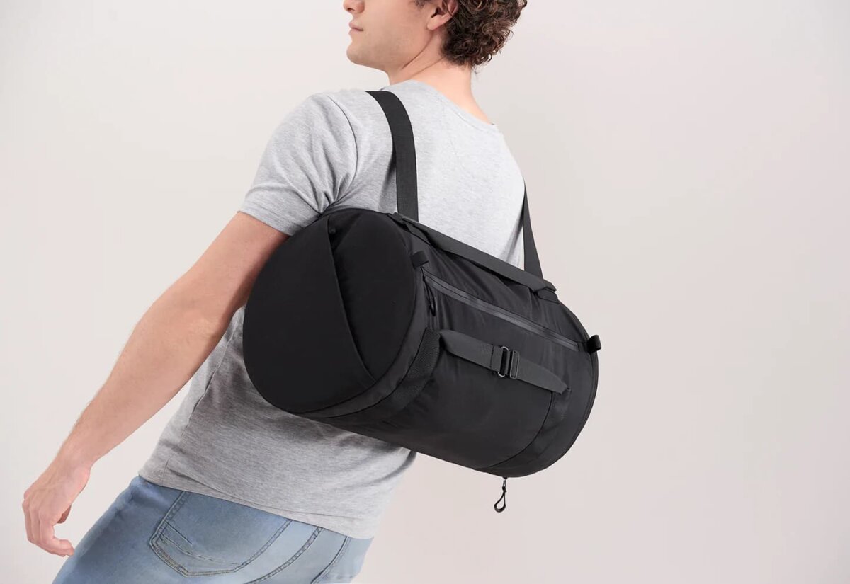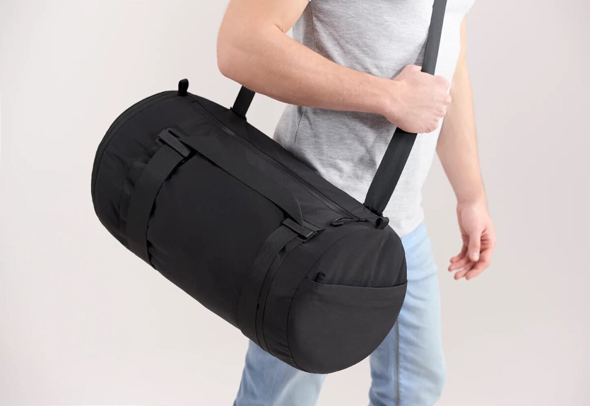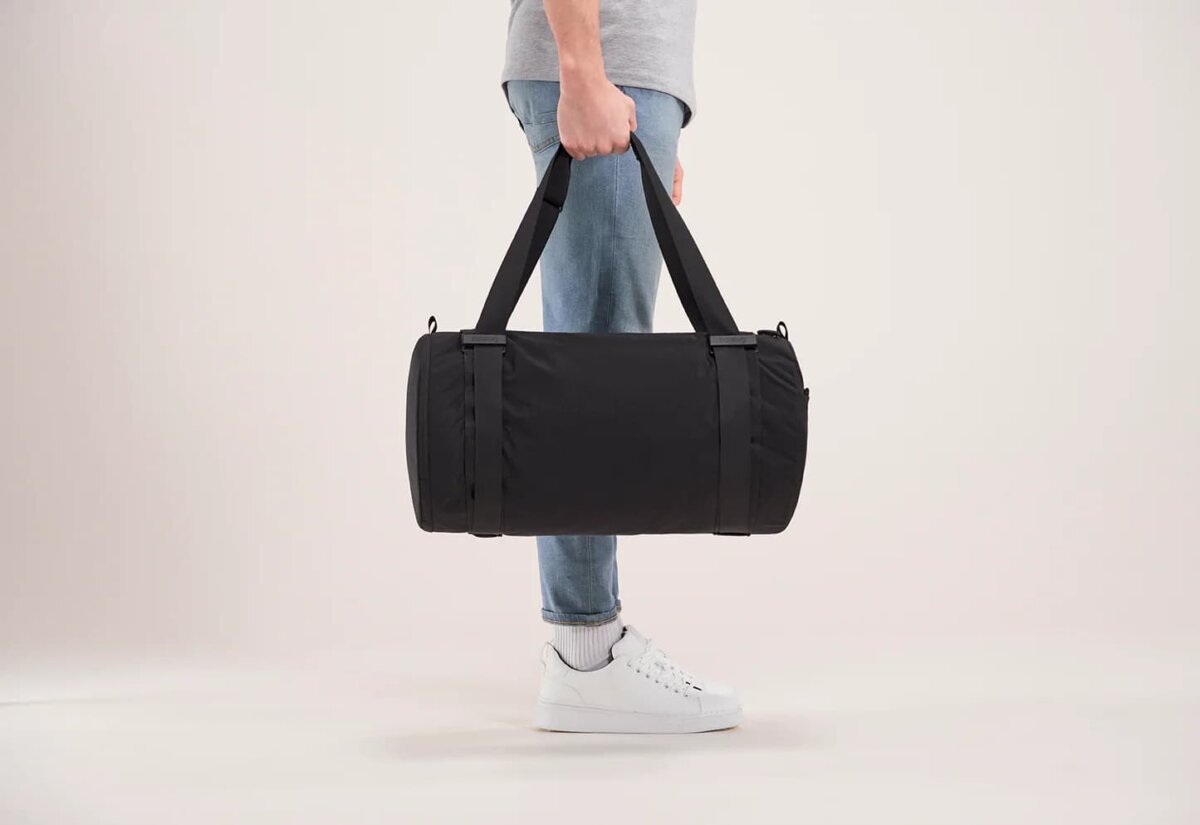 The Duffel model is equipped with Notabag’s classic multifunctional strap, so you can carry your bag in your hand, over your shoulder or on your back. Notabag attaches great importance to quality craftsmanship and robust materials. The matching waterproof YKK zipper, the matt aluminum buckles and the water-repellent fabric ensure that your Notabag will last for many years. Whether for sports or traveling, the minimal equipment proves to be of maximum benefit: Features