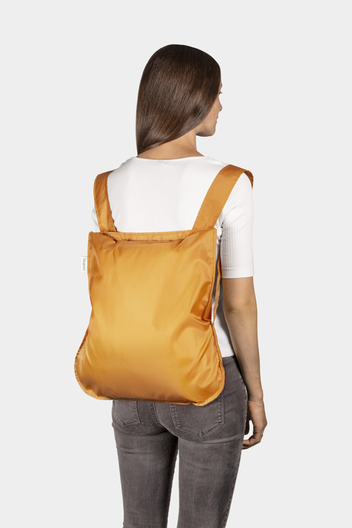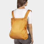 Notabag Recycled – Mustard – Your sustainable lifestyle partner! The clever bag transforms into a rucksack in no time at all and actively contributes to protecting our planet by recycling 12 plastic bottles. Made from 100% recycled PET polyester, it is water-repellent, machine washable and can carry up to 20 kg. Free your hands and carry Notabag Recycled comfortably on your back. It offers space for all your favorite snacks or books and can be easily folded up when you don’t need it. Notabag Recycled – your contribution to an environmentally conscious lifestyle that is both practical and trendy.