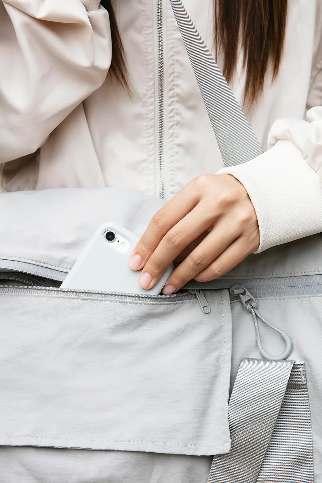 - Votre téléphone, votre monnaie et d’autres petits objets peuvent tous être transportés dans la poche détachable.