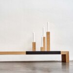 Raumgestalt4 chandeliers en chêne (30, 22, 14 et 6 cm de haut) avec aimant et plaque en Ferro Nero (22 x 35 cm)