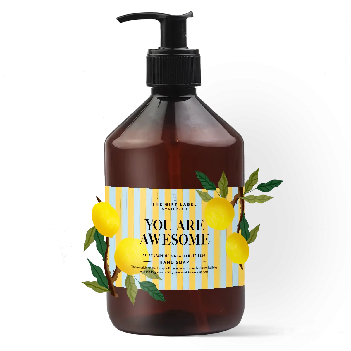 Ce savon pour les mains nettoie vos mains en douceur et a un parfum de Silky Jasmine & Grapefruit Zest. Les bouteilles en plastique recyclé ont de beaux designs et des citations exaltantes. Le savon végétalien est sans sulfate et sans colorant.