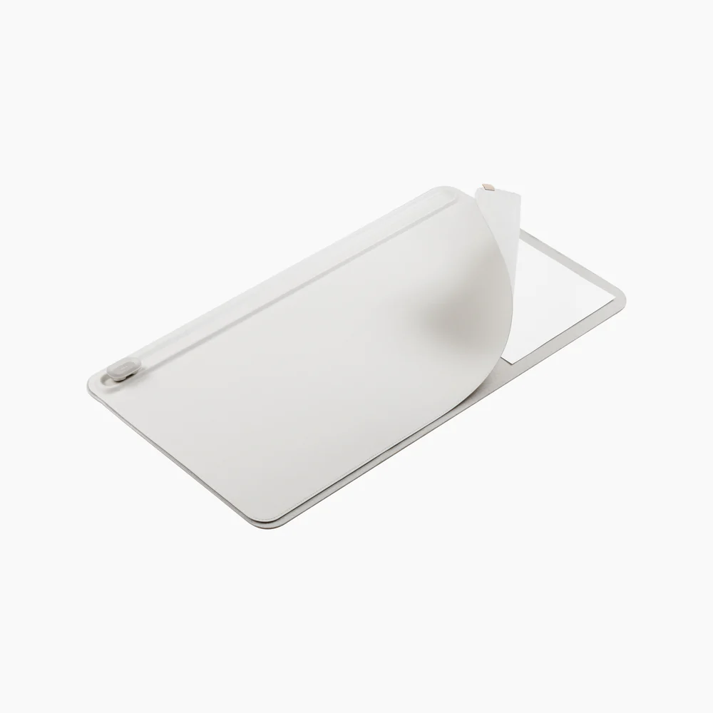 Le Slim Desk Mat peut être positionné des deux côtés à l’aide de la barre d’outils afin de convenir aussi bien aux droitiers qu’aux gauchers.
