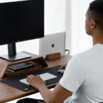 Votre espace de travail devient plus efficace avec le Laptop Dock Le Laptop Dock est un support élégant pour ordinateur portable qui fait passer votre organisation de bureau à un niveau supérieur. En plaçant votre ordinateur portable à la verticale, vous économisez non seulement de la place, surtout si vous utilisez un moniteur externe, mais vous augmentez également votre productivité. Cette station d’accueil reste solidement fixée à la surface du bureau grâce à ses ventouses robustes et à sa construction solide, tout en offrant une protection optimale à votre ordinateur portable. Fabriqué en bois massif de haute qualité et en acier inoxydable, le socle pour ordinateur portable garantit une stabilité et un maintien durables de votre ordinateur portable. Largeur réglable pour une compatibilité maximale Le support convient aux appareils d’une épaisseur maximale de 2 cm.