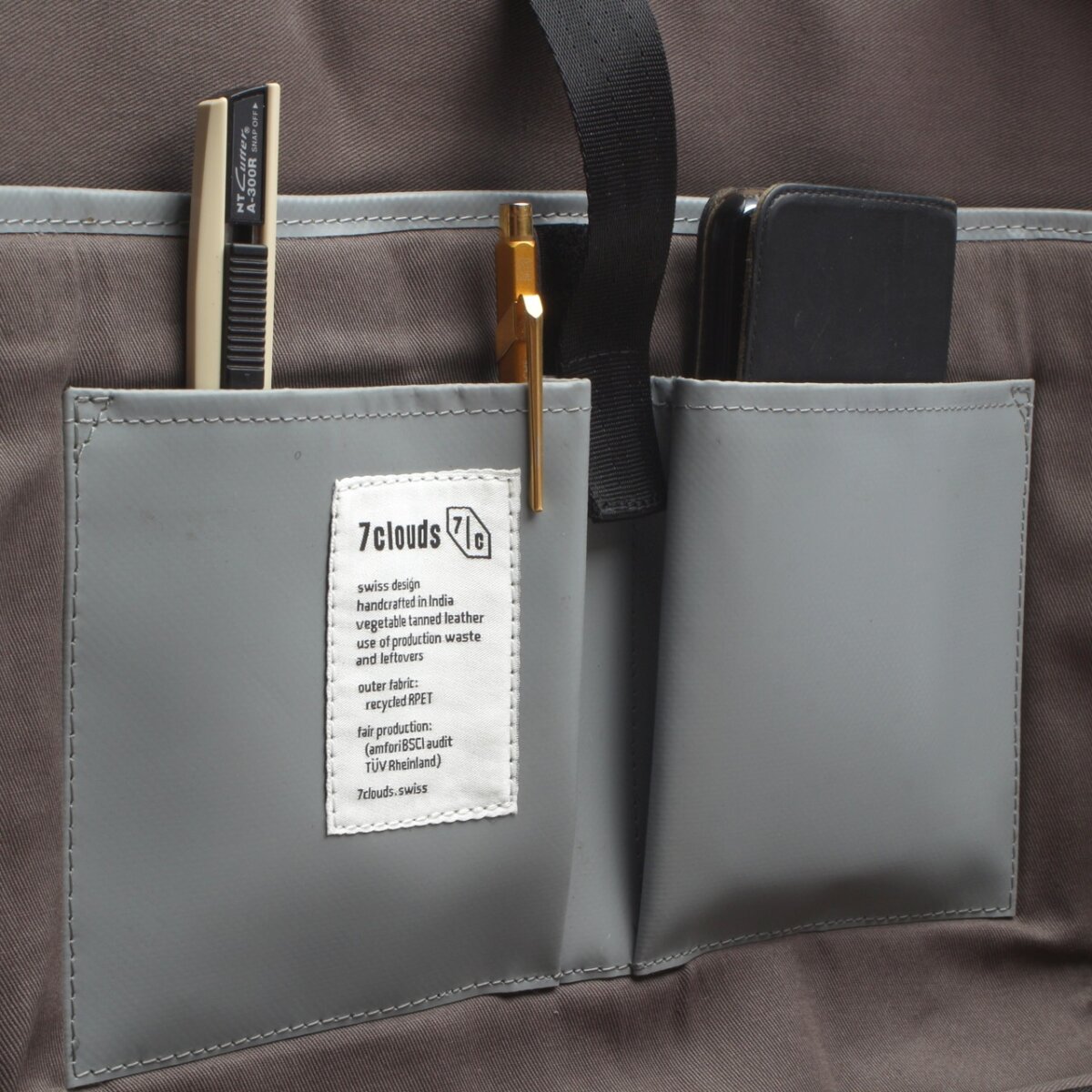 Die Business-Laptoptasche Arlon 7.1 – vielseitig für Reisen, Studium und Büro. Ihr innovatives Design mit 45°-Cut am Taschenkopf ist charakteristisch für 7clouds. Mit Laptop-, Tablet- und Handyfach sowie praktischer Reissverschluss-Aussentasche. Arlon 7.1 vereint Funktionalität und Nachhaltigkeit in einem minimalistischen Fashion-Statement. Hergestellt aus recyceltem Polyester RPET und Bootabdeckungsplane.