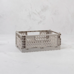 Dies ist unsere graue kleine zusammenklappbare Aufbewahrungskiste aus recyceltem Kunststoff. Wir lieben diese schönen Kisten, sie sind extrem vielseitig und in verschiedenen Farben erhältlich.