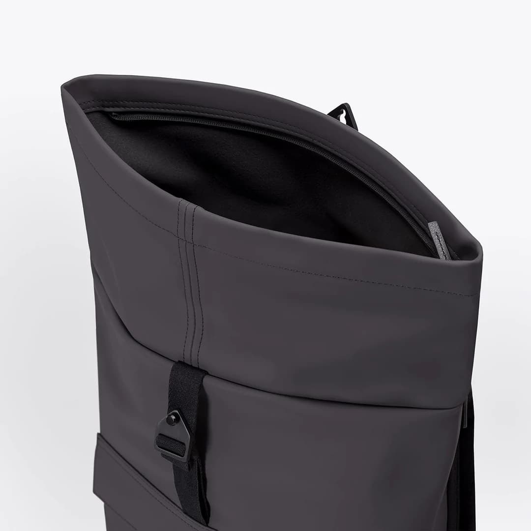Farbe: Schwarz (Lotus Series)   Minimalistischer Tagesrucksack – egal ob unterwegs mit dem Rad, beim Einkaufen oder im Nachtleben. Der Roll-top schliesst mit Metallschnalle und ermöglicht ein praktisches Befüllen des Jasper Backpacks.
