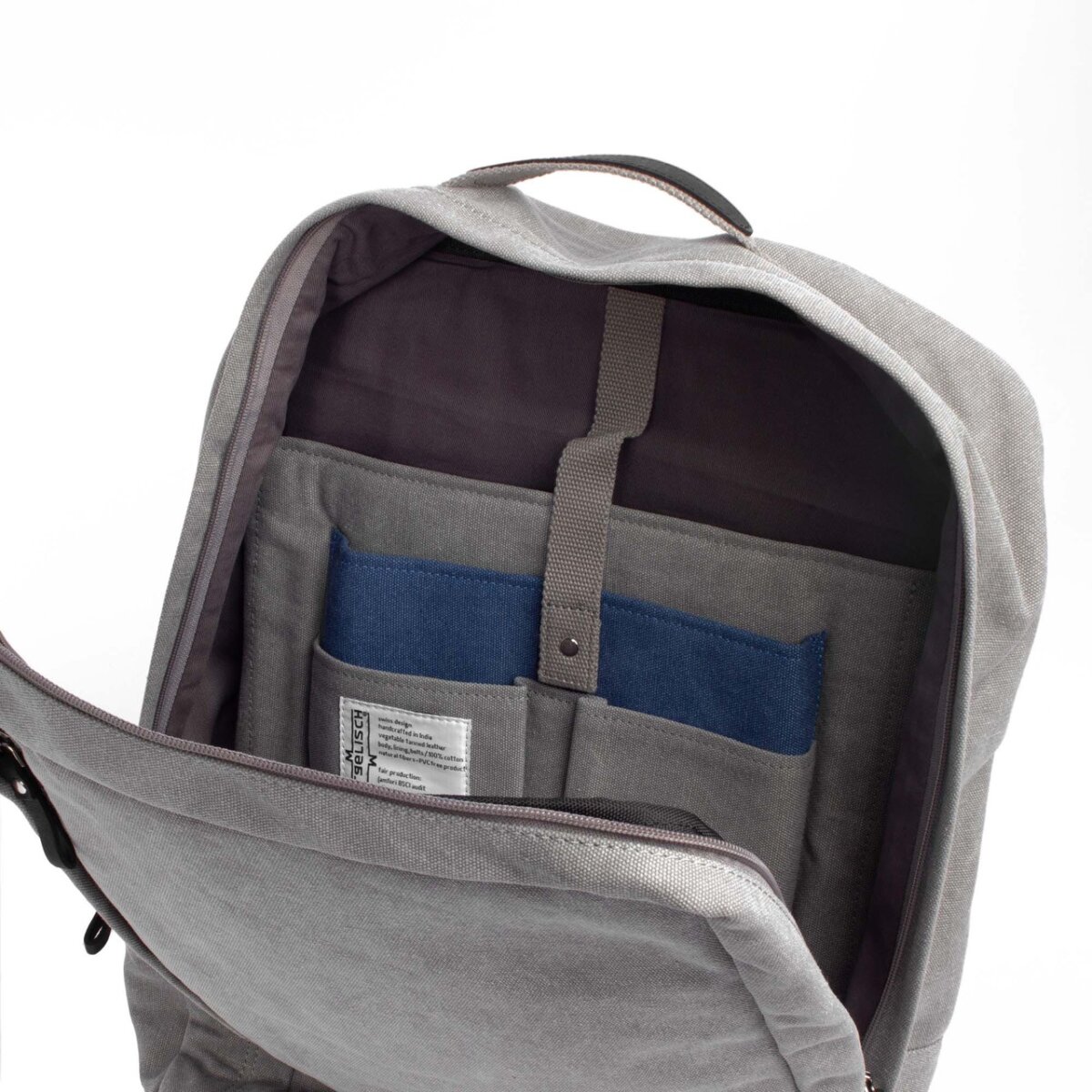 Wasserabweisendes Canvas, Metallbeschläge und ein gepolsterter Rücken machen sie ideal für unterwegs. Reissverschlusstaschen auf der Vorder- und Rückseite bieten zusätzlichen Stauraum. Ein kompakter Begleiter für jeden Tag.