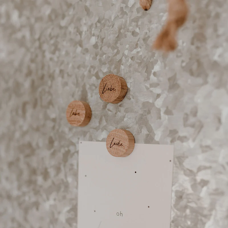 Das Besondere an den Holzmagneten aus Eichenholz sind die liebevoll designten Lasergravuren auf der Vorderseite.