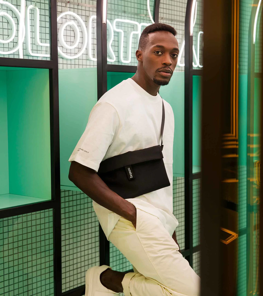Notabag Crossbody – Das preisgekrönte Lifestyle-Accessoire Unser Notabag Crossbody Black wurde mit dem German Design Award 2023 ausgezeichnet und ist ein vielseitiges und hochwertiges Lifestyle-Produkt. Trage es über die Schulter, quer über den Körper, in der Hand oder um die Hüfte – die Anpassungsmöglichkeiten sind endlos. Die Tasche lässt sich leicht vergrössern und verkleinern, dank der praktischen Druckknöpfe.