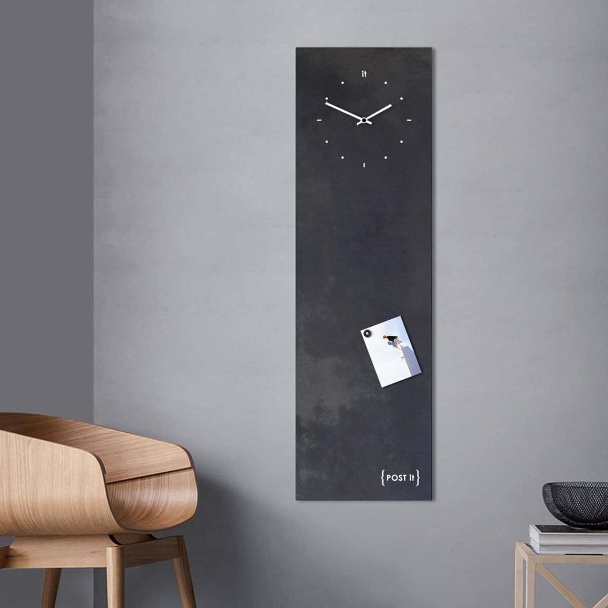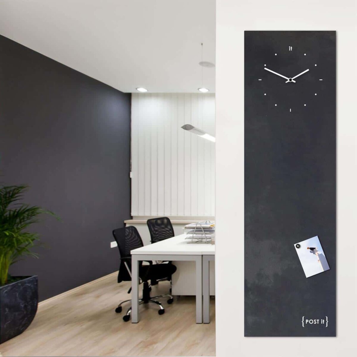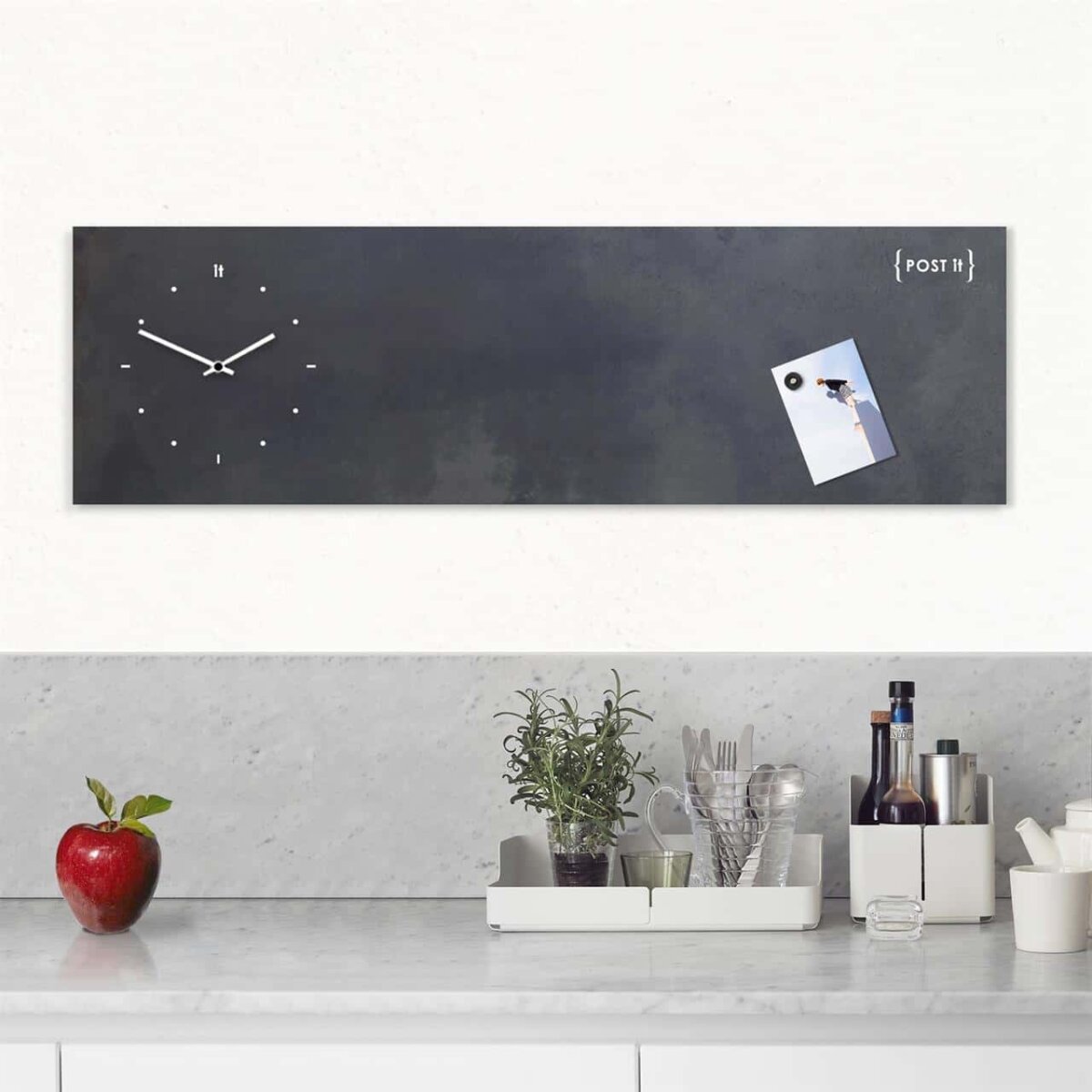 Post IT, Uhr und Pinnwand, gelaserter Schwarzstahl, händischer Siebdruck