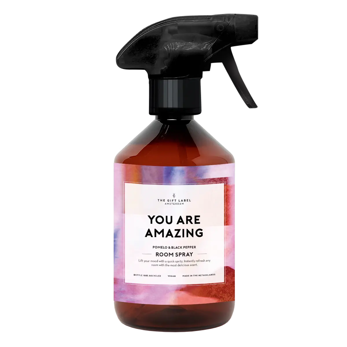 Dieser vegane Heimspray duftet nach Pampelmuse und schwarzem Pfeffer. So köstlich! Die 500-ml-Flasche besteht zu 100 % aus recyceltem Kunststoff und wird in den Niederlanden hergestellt. Ein perfektes langlebiges Geschenk für jedes Zuhause!