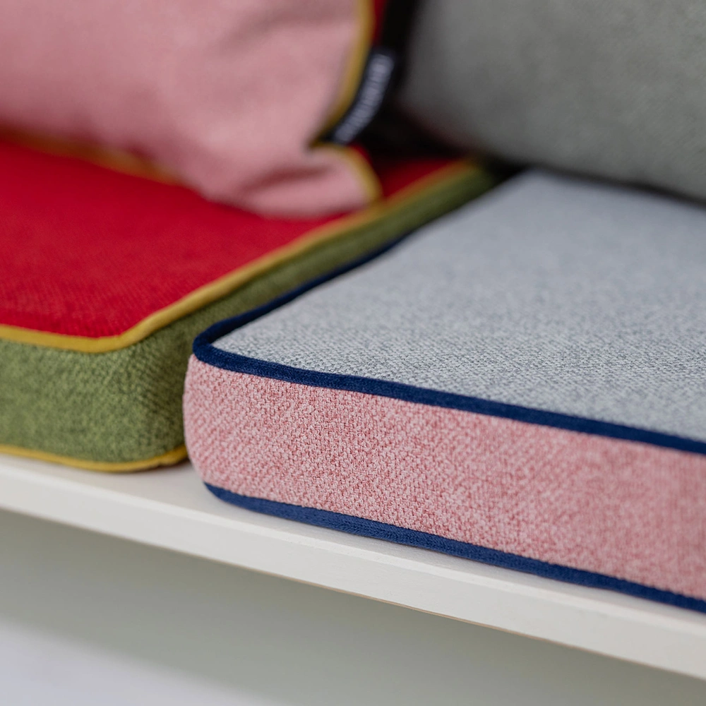 Noch ein Highlight für Balkon, Küche oder Terrasse gesucht? Vielseitig kombinierbar kommen die bequemen Sitzkissen in tollen Farbkombinationen auf der Bank, dem Stuhl oder im Strandkorb perfekt zum Einsatz. Der Bezug ist abnehmbar und kann problemlos in der Waschmaschine gereinigt werden. 4-farbiges Sitzkissen mit allseitig umlaufender Paspel aus Samt, mit Reissverschluss, inkl. Schaumstofffüllung. Waschbar bis 30 °C.