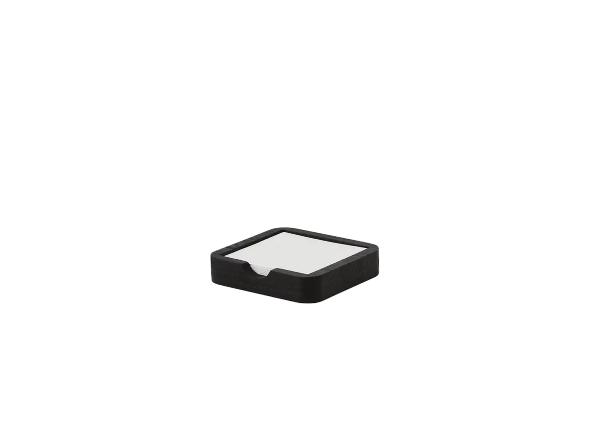 Eine kleine Vertiefung an einer Seite erleichtert das Entnehmen der Notizzettel und erhöht die Benutzerfreundlichkeit dieses Tabletts.
